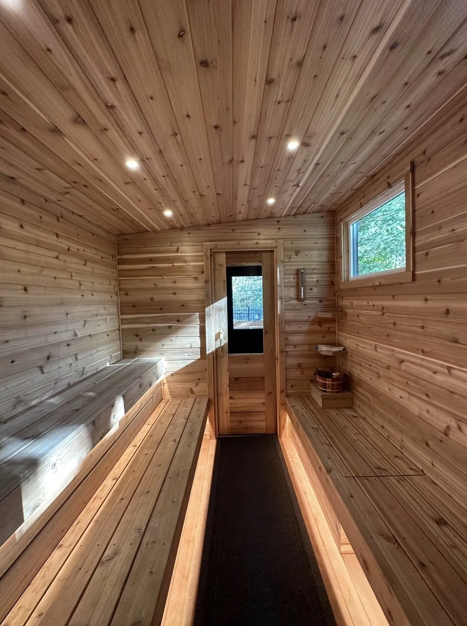 Share the sauna and cold tubs with up to 12 guests. Perfect for solo visits, couples, or friends who love to meet new people.